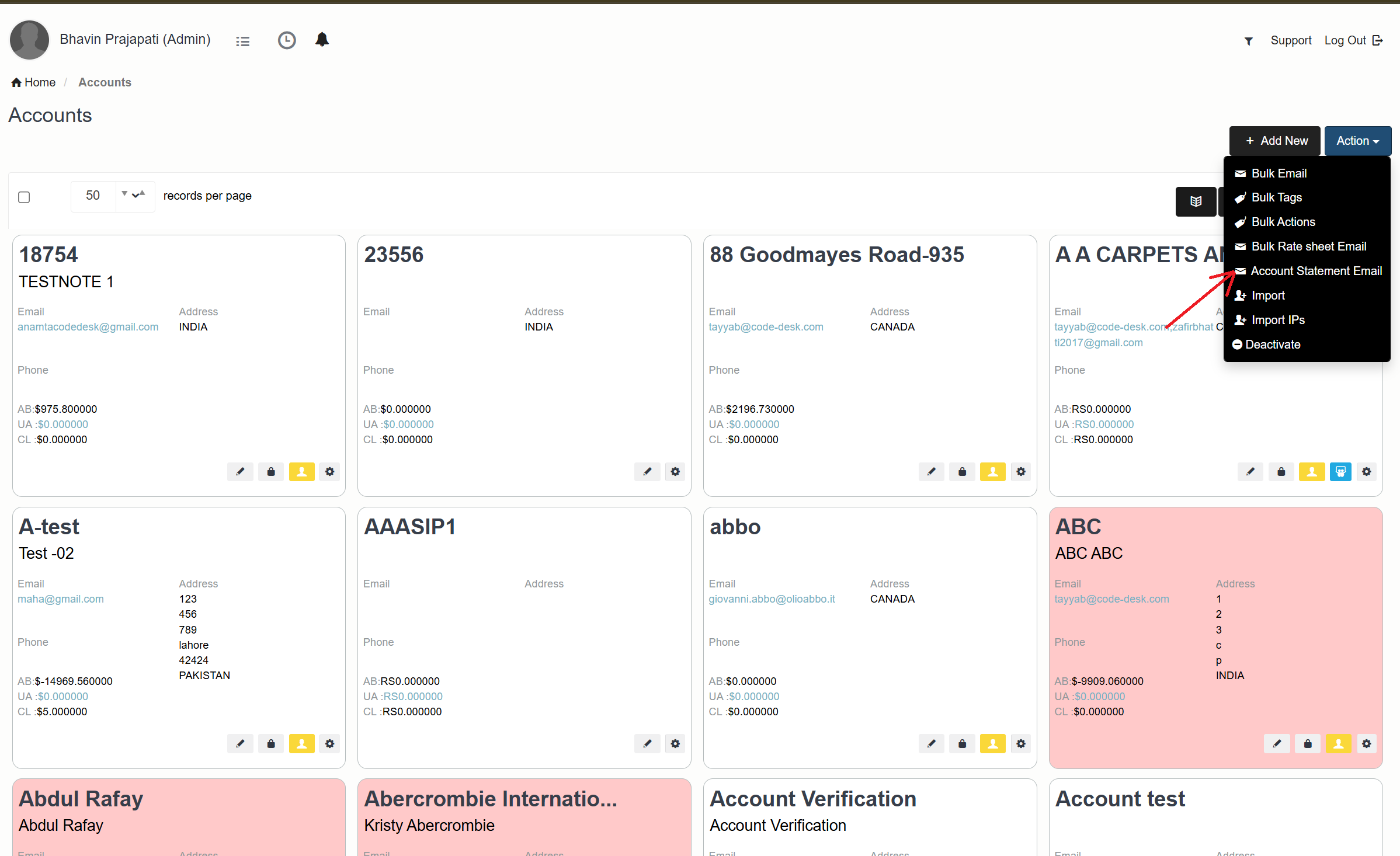 - Go to AccountsèSelect AccountsèActionè Account Statement Email