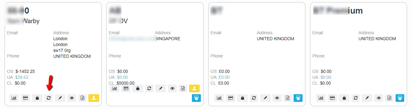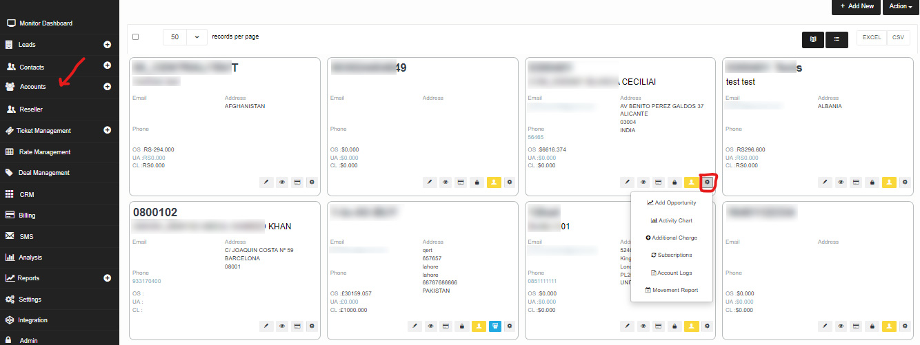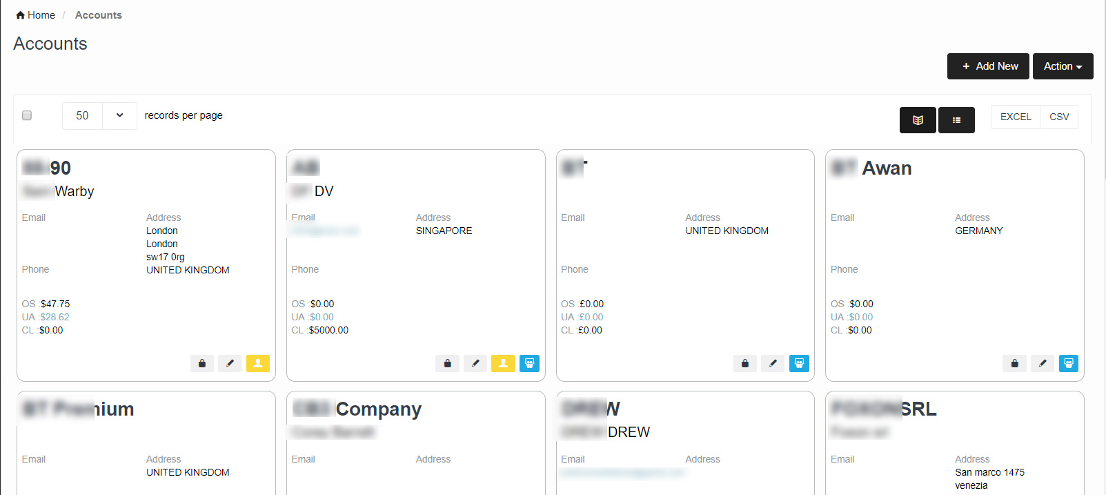 This section is designed to create and manage accounts. The main window is represented by the list of all accounts in the system.