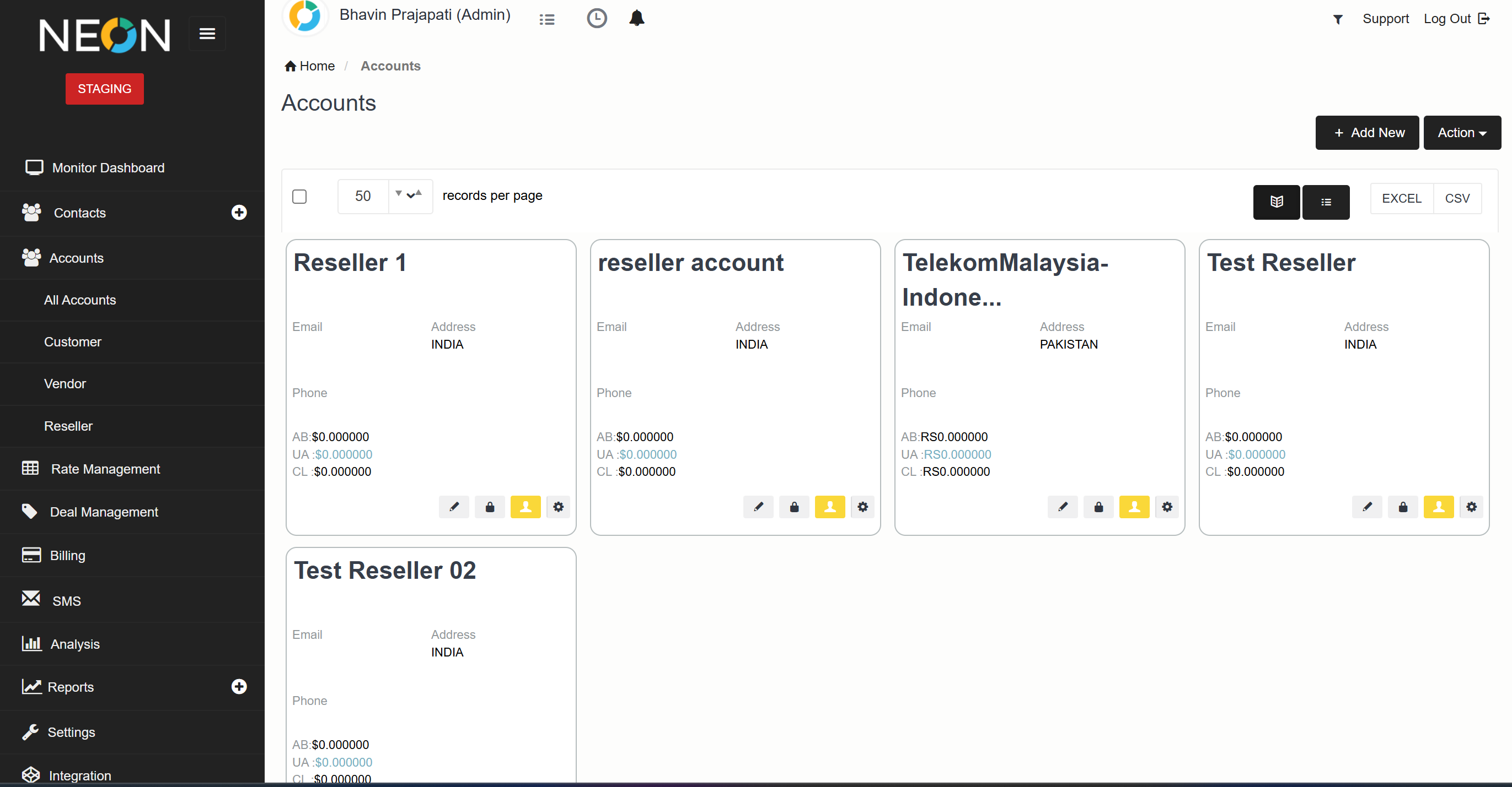 To create a New Reseller Account, go➔Accounts➔Reseller➔Add New