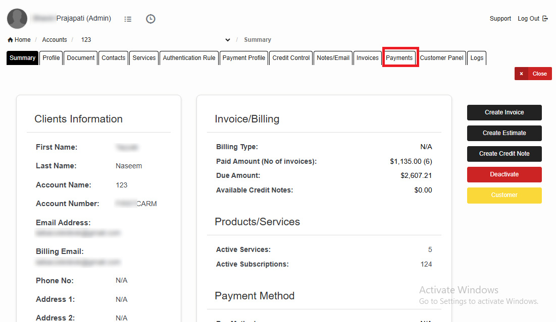 1: Login to your NEON account, and from the left sidebar menu, click on the Accounts