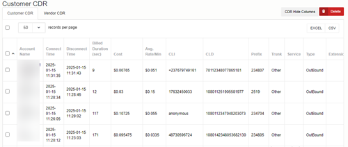 Customer CDR Export Record Limit