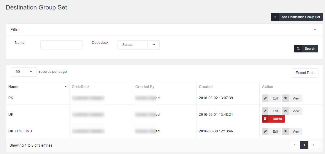 Please Note , If destination group set is applied to any discount plan then you won't be able to Edit or Delete it or Add more codes to it.