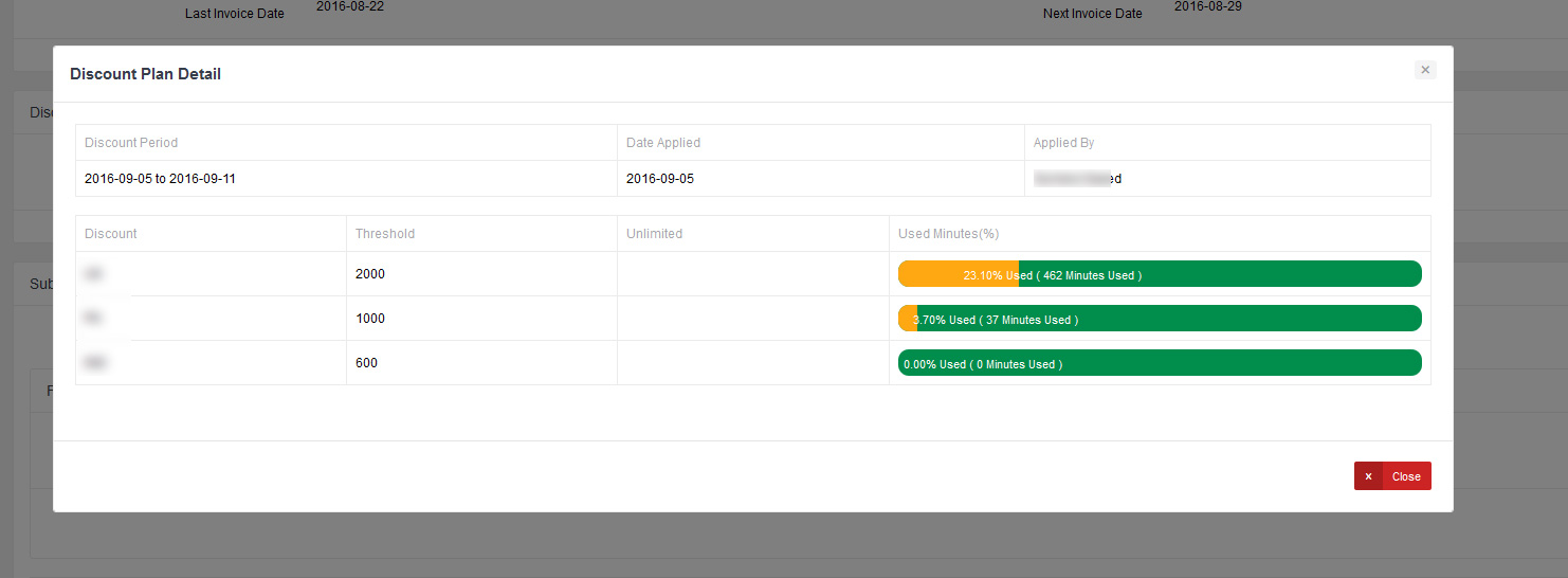 Discount : The percentage discount must be numeric. A 0% discount means "standard rates applied",while a 100% discount means "free call".