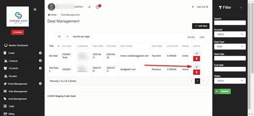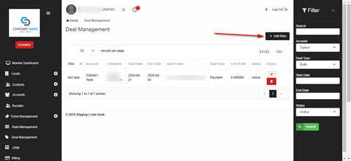 You can add new deal by clicking on Add New button on the screen.