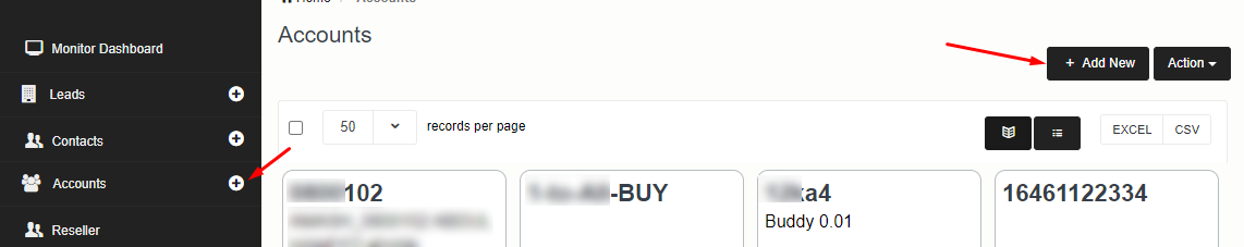 Create Account : go to Account -> add new fill the details and save