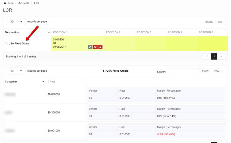 Here you can view LCR against your Vendors and also margins against your customer rates.